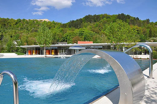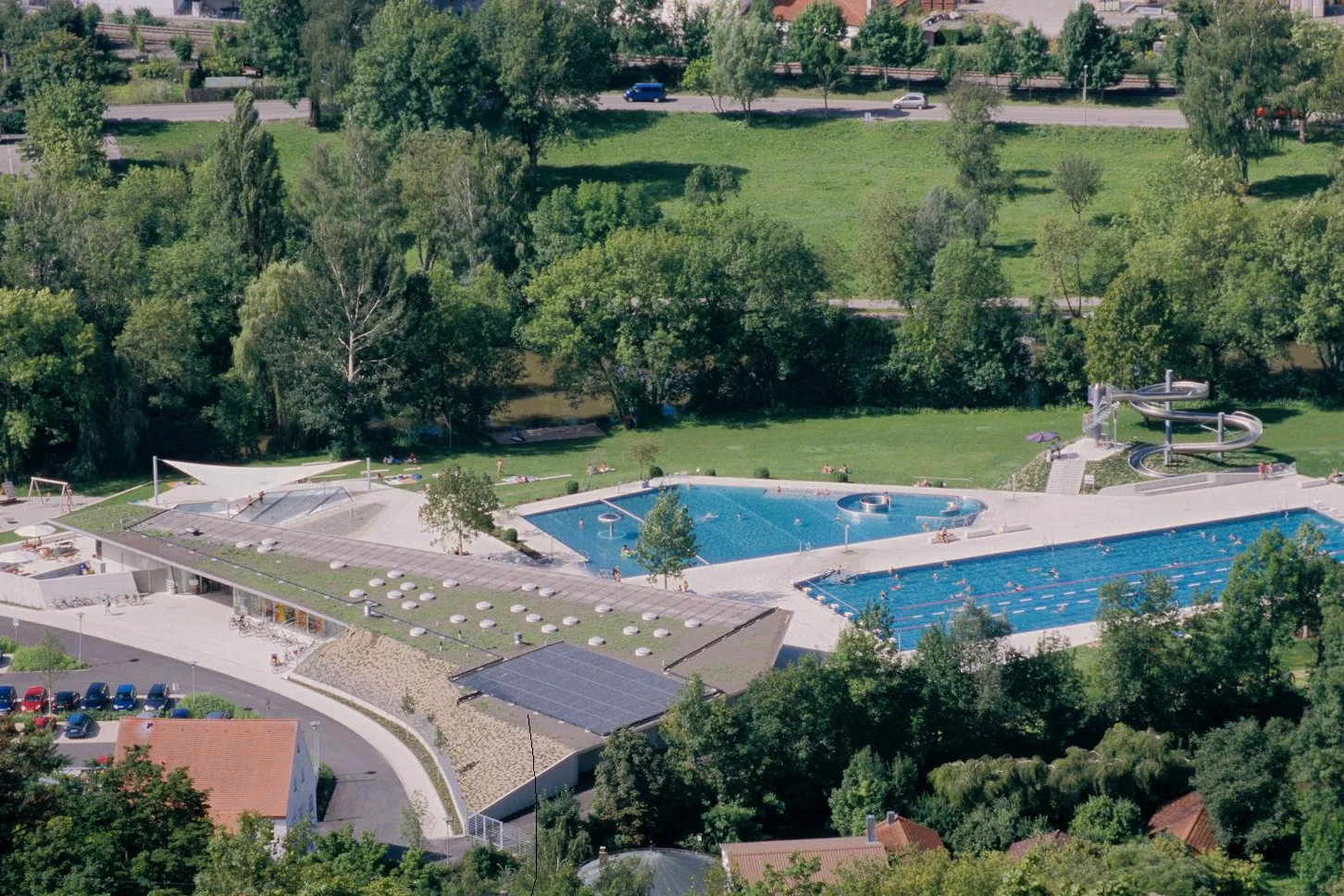 Das Inselbad der Stadt Eichstätt stellte alle am Bau Beteiligten vor eine Fülle neuer Aufgaben. Von der Gründung über den Hochwasserschutz bis zur Elektroinstallation in dem ausschließlich aus Sichtbetonflächen bestehenden Umkleidegebäude, galt es mit Weitblick an die Planungsleistungen heranzutreten.
